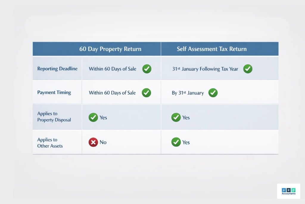 Many taxpayers assume they can wait until 31 January and settle everything through Self Assessment; however, this is not always correct. If you dispose of a UK residential property that creates a chargeable gain, you must report and pay capital gains tax on UK residential property within 60 days of completion. Self-assessment does not replace this obligation.